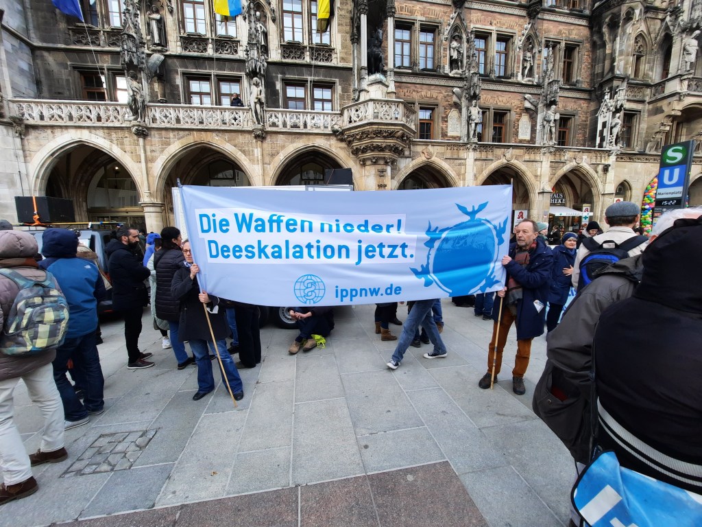 Dieses Wochenende findet wie jedes Jahr die Münchner „Sicherheitskonferenz“ statt, die aus vielen Gründen mehr als kritikwürdig ist. Dazu hatten mehrere Bündnisse – linke wie rechte – zum Gegenprotest aufgerufen. Das traditionelle linke Anti-Siko-Bündnis, das eine Demo vom Stachus bis zum Marienplatz organisierte, hat (im Unterschied zu einer Friedensdemo am 1. Oktober 2022, über die wir berichtet haben) sich nun in einer Pressemitteilung dezidiert nach rechts abgegrenzt. „Freie Linke“ waren daher ebenso wenig zu sehen wie das Schiller-Institut oder „München steht auf“. Das Querdenken-Lager hatte eine eigene Kundgebung auf dem Königsplatz; dazu gab es eine Kundgebung von AfD und Compact auf dem Karl-Stützel-Platz, der von großem antifaschistischen Gegenprotest begleitet wurde. Einig waren sich alle Friedensbewegte trotz aller Abgrenzungen (die es übrigens nur von linker Seite gab) darin, die Aggression des russischen Regimes zu bagatellisieren, die Haupt- oder Alleinverantwortung auf die NATO abzuwälzen und verschwörungsideologische Inhalte und Medien mindestens zu dulden. Oder wie das linke Anti-Siko-Bündnis in seiner PM sagt: „In der Ankündigung zur ‚MSA‘-Demo am 18.02. auf dem Königsplatz werden zum Ukraine-Krieg Positionen vertreten, die durchaus vernünftig klingen. Wenn nicht nur wir, sondern immer mehr Menschen für ein Ende des Krieges in der Ukraine eintreten und anstelle von immer mehr Waffenlieferungen, einen Waffenstillstand und Verhandlungen fordern, dann kommt die Bundesregierung vielleicht langsam unter Druck, sich für eine Verhandlungslösung einzusetzen. Kein Thema bei den Veranstaltern von ‚München steht auf‘ ist jedoch die milliardenschwere Aufrüstung oder die rigorose Flüchtlingsabwehr Deutschlands, weil dann deren Nähe zu rechts-nationalistischen Positionen und zur AfD deutlich werden würde.“ So so, die Positionen der Rechten hinsichtlich des Ukrainekriegs sind also „vernünftig“. Lediglich in der Frage der Aufrüstung und der Aufnahme von Flüchtlingen steht man auseinander, wie anschließend betont wird – was ziemlich velogen ist, bedenkt man, dass sich auch „Aufstehen“ an der linken Demo beteiligte und Sevim Dagdelen (MdB, Die LINKE) in ihrem Redebeitrag auf der Demo offen zur Unterstützung des „Manifests für Frieden“ von Alice Schwarzer und Sahra Wagenknecht aufrief – derselben Wagenknecht, die in der Vergangenheit nun nicht gerade durch flüchtlingsfreundliche Positionen aufgefallen ist …