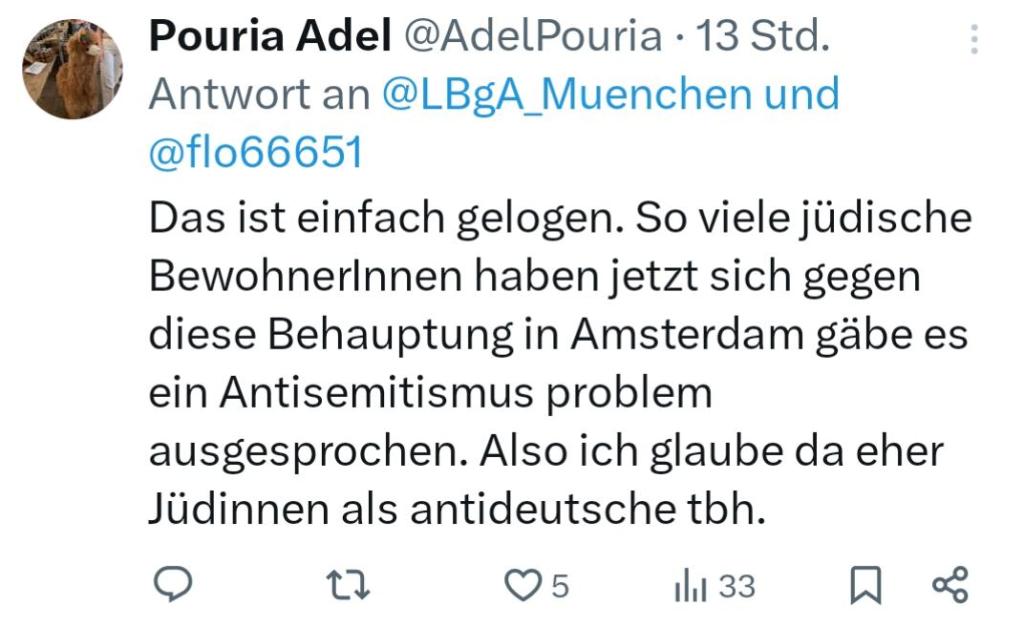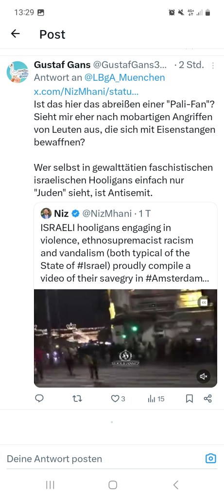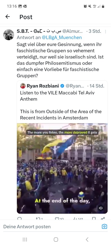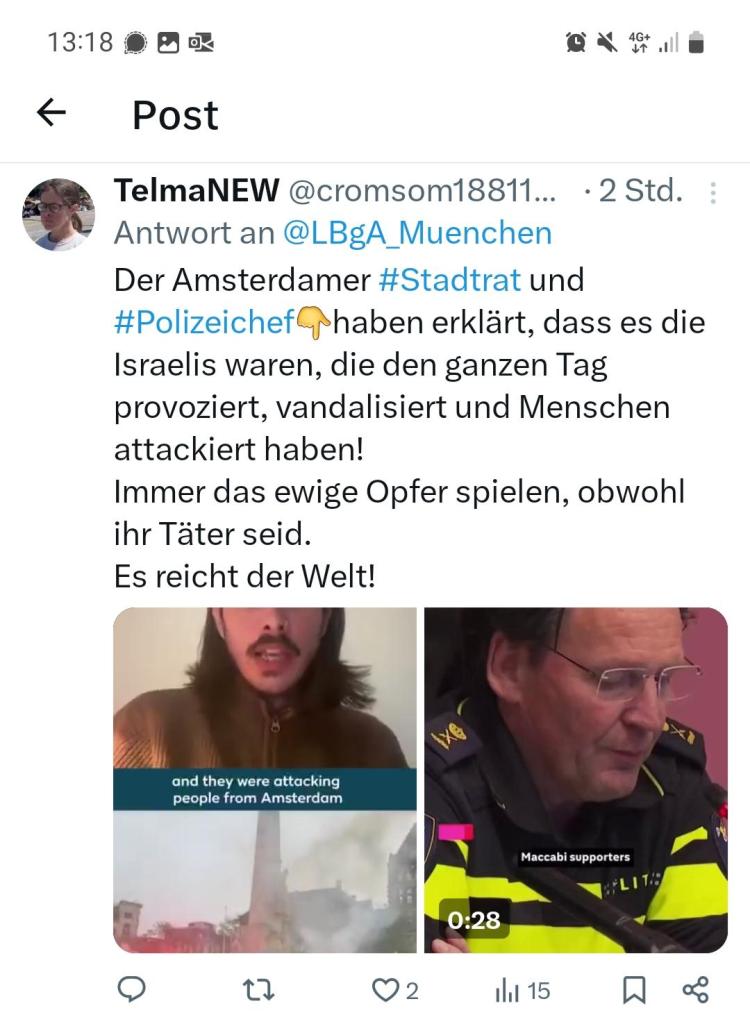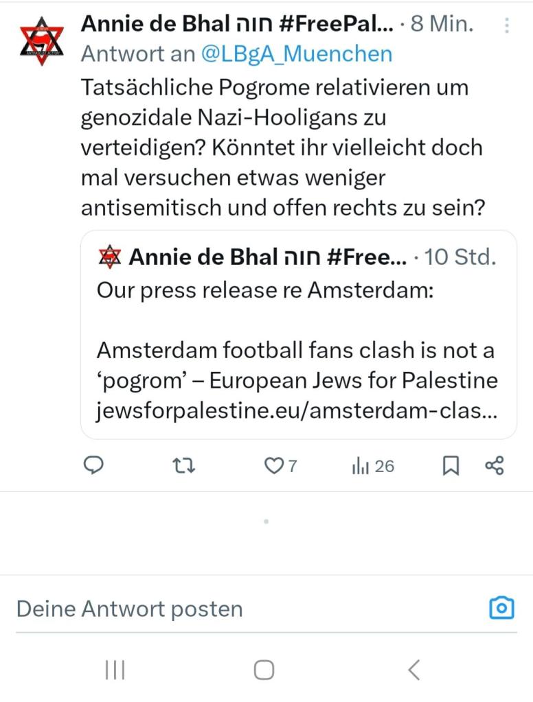 Anlässlich der aktuellen öffentlichen Debatte um die antisemitischen Ausschreitungen in Amsterdam haben wir am 9. November folgenden Tweet auf X gesetzt: